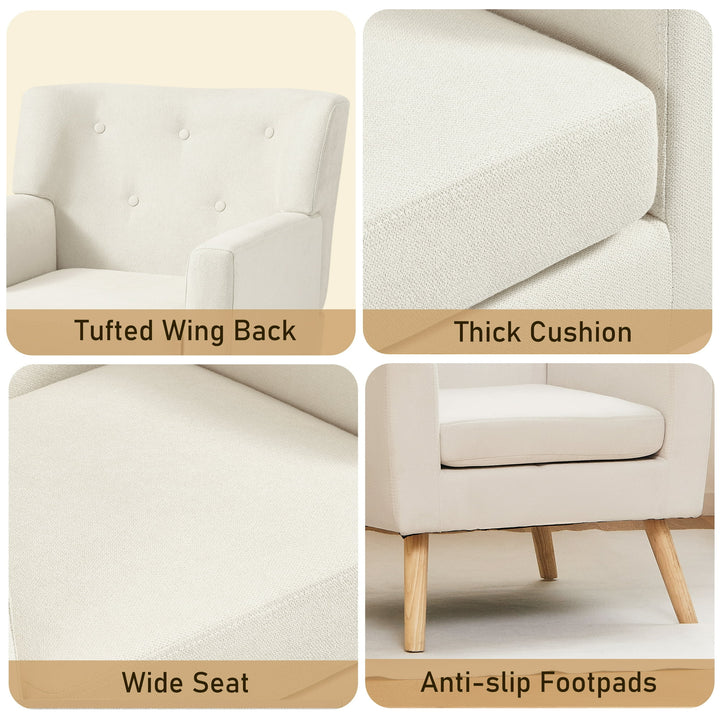 - 【MODERN DESIGN】- Elevate your living space with the sleek, mid-century modern design of this wingback armchair. Its clean lines and tapered wood legs bring a stylish update to any room. Button tufting on the solid-colored upholstery adds a touch of elegance, creating a bright and airy atmosphere.