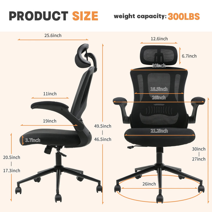 TrumanPick Ergonomic Office Chair, High Back Adjustable Computer Desk Chair with Lumbar Support, 300lb, Black