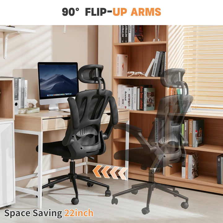 - Foldable Armrest Design: This ergonomic chair is designed to save space by allowing you to store it under the desk when not in use. Its adjustable arms ensure that it can fit any desk with varying heights. Foam-padded armrests offer exceptional comfort for your forearms and hands.