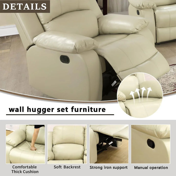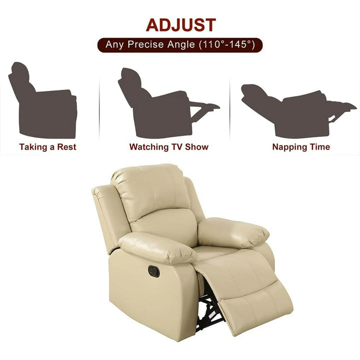 TrumanPick Manual Leather Recliner Chair,Overstuffed reclining Armchair Home Theater Sofa Recliner for Living Room,Beige