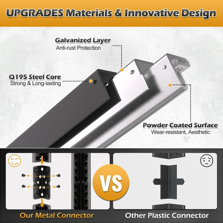 - 【10 Steps Easy Assembly】The package is equipped with detailed installation manual and videos. This industrial shelving adopts the installation method of gourd interlock. Comes with a rubber mallet and gloves for easy installation. You only need to tap it lightly to complete the installation quickly in 10 steps. If you have any questions about the product or installation, please feel free to contact our professional after-sales team.