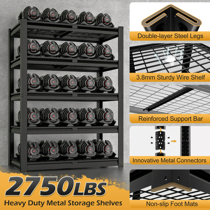 - 【Heavy Duty Metal Wire Storage Shelves】Trumanpick storage shelves are made of double-layer thickened Q195-grade metal steel columns, thickened metal wire shelving, and sturdy support rods. Adding an extra middle support beam to each shelf significantly enhances the stability and load-bearing capacity of the storage shelf unit. The heavy-duty shelving supports up to 550 lbs per tier, with a total load capacity of 2500 lbs for the 5-tier storage rack.