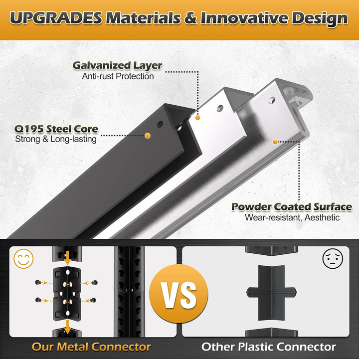 - 【10 Steps Easy Assembly】The package is equipped with detailed installation manual and videos. This industrial shelving adopts the installation method of gourd interlock. Comes with a rubber mallet and gloves for easy installation. You only need to tap it lightly to complete the installation quickly in 10 steps. If you have any questions about the product or installation, please feel free to contact our professional after-sales team.