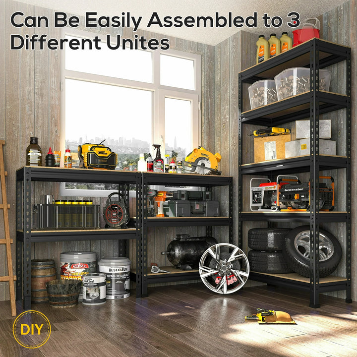 【Large Storage Space】This 5-tier standing storage rack offers additional space for storage organizing in your garage, kitchen, cloest, pantry, basement, warehouse, shop, shed, living room, officeand more. Available in sizes ranging from 36" to 48", you can choose the size that best fits your needs. The modern style of the black shelves complements any home décor.
