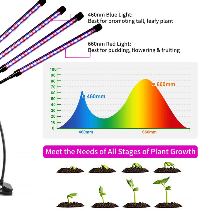 [CHOOSE LIGHT TUBUS] Unlike some other led grow light, our grow lights also have the function of choosing light tubes light up. Flexible to turn on the light bar, 1/2/3/4 lights on. You can turn on the light tubes you need to use according to your needs.