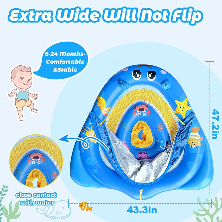 - 🐋 Bath and Pool Floatie: Unique and cute whale swim ring for bathtubs, pools, and beaches for infants and toddlers 6-24 months. Features an adjustable safety seat, and dual inflation chamber, 20% wider for superior buoyancy/stability in water, and does not flip over.