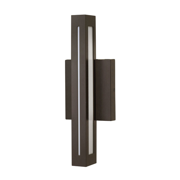 Vue’s contemporary linear LED design is constructed of extruded and die casted aluminum and is Available in either Bronze or Titanium finishes. The seamless architectural form emits light from white acrylic side windows and sleek front sliver.
