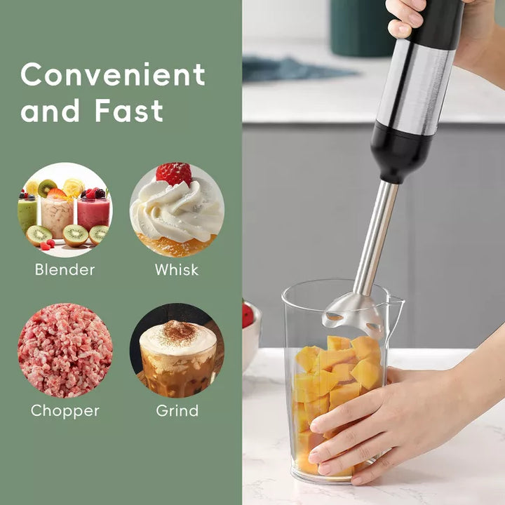 WHALL Immersion Blender with Whisk, Milk Frother Attachments