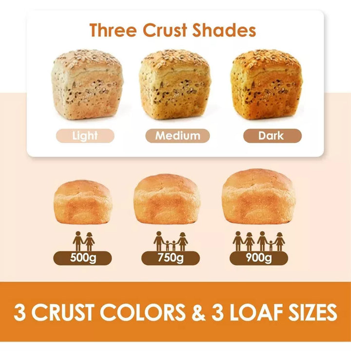 Precise 2LB Capacity Design:Suitable for daily household needs, it can make approximately 900g of bread at a time (equivalent to 8-10 slices of sliced bread)