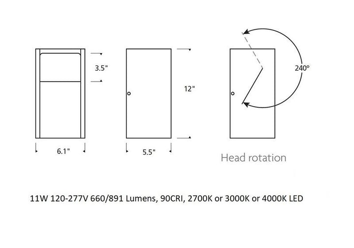 - Light distribution: Adjustable with adjustable head pivots 240 degrees
